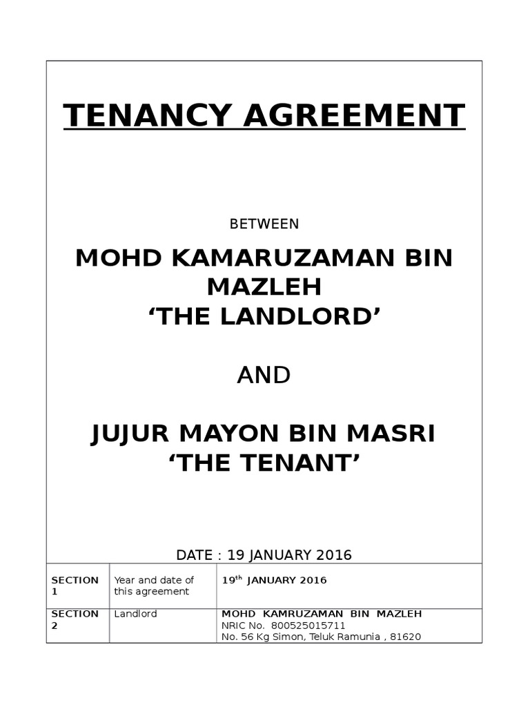 Contoh Tenancy Agreement Malaysia Arif Hussin